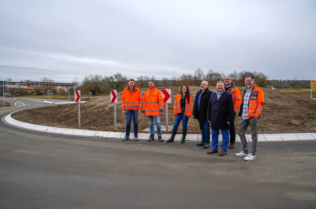 Nach nur 14 Wochen Bauzeit kann der neue Kreisverkehr im Bereich der Eichfelder Straße bei Volkach am Freitag,